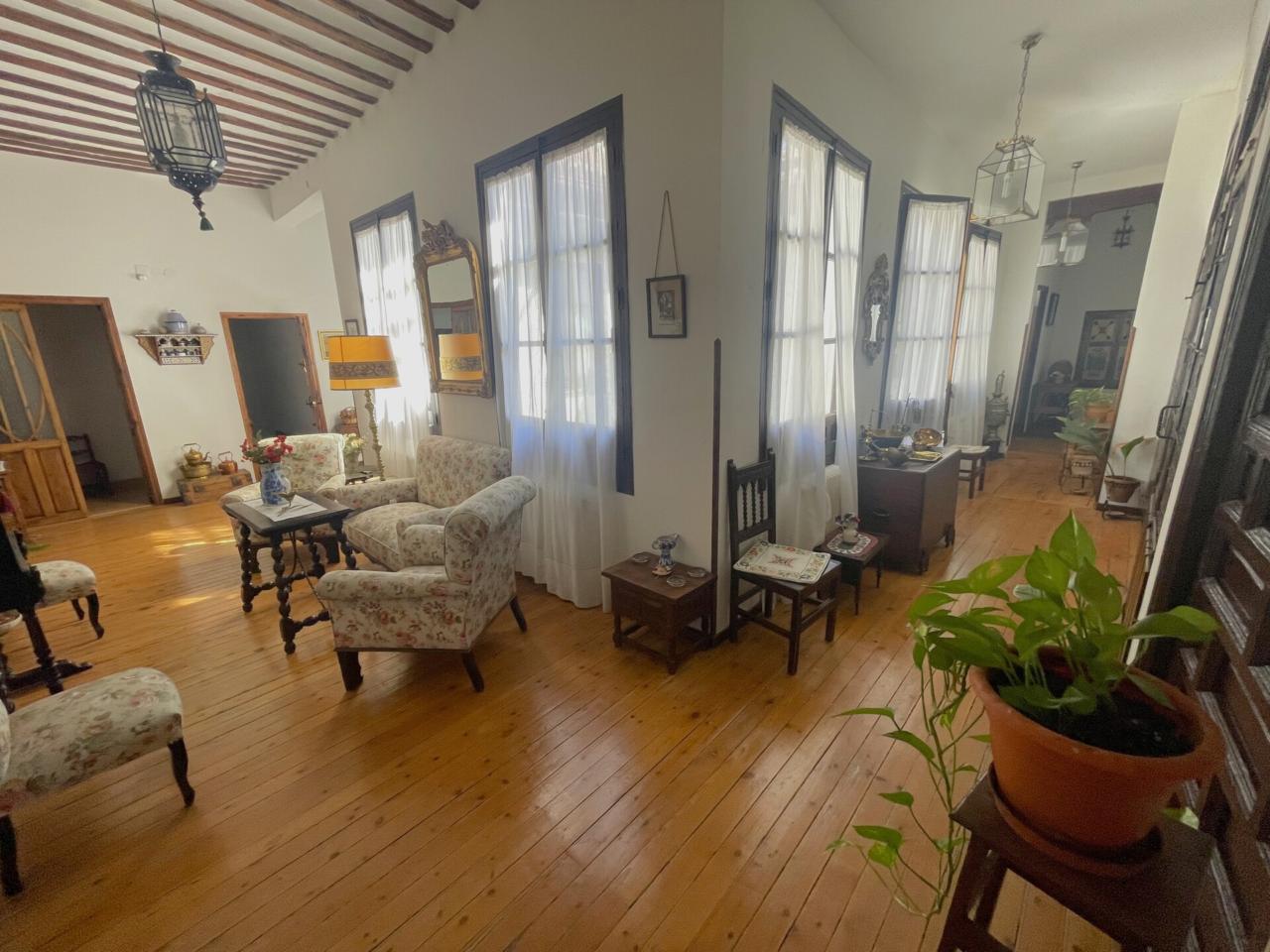 En la primera planta nos encontramos con una amplia galería con suelo de madera alrededor del patio, 10 habitaciones dobles y 4 baños completos.